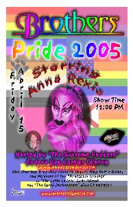 Tallahassee's Pride Show 2005 Starring: "The Wild Child" Anna Rexia and "The Pansexual Cabaret Players" Hosted by:"The Supreme Goddess" Endora Van Cartier Clinton